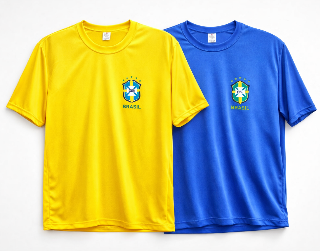 Camisetas já com o brasão da seleção em DTF