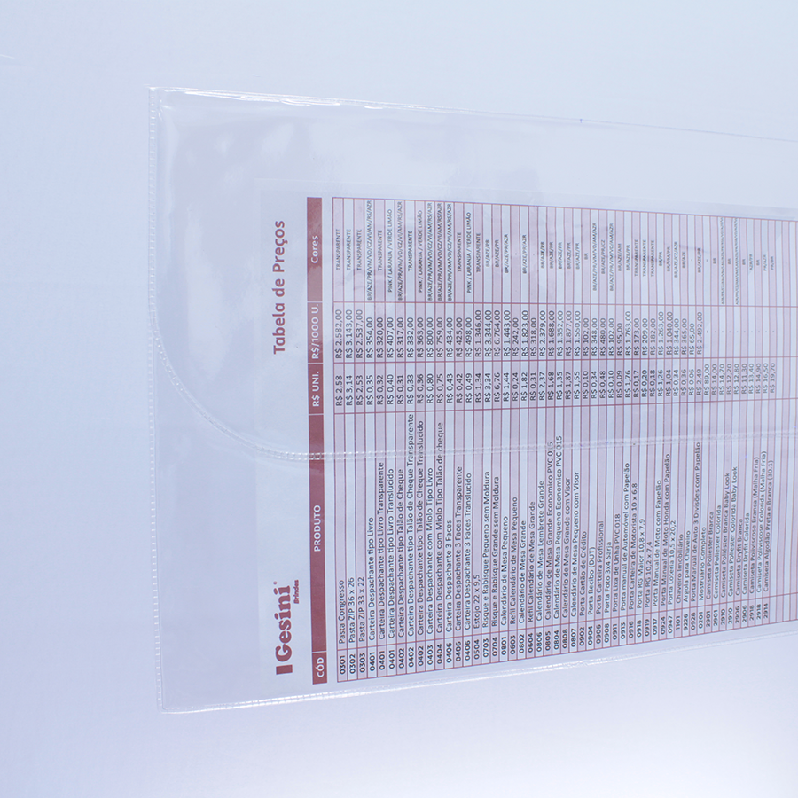 Pasta em PVC Flexível transparente.